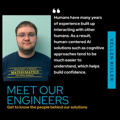 A University of Michigan alumni, Kellen Bixler is an Artificial Intelligence Engineer III with SoarTech. When considering a path for himself after graduation, Kellen was interested in applying recent AI advances toward generating content and creating interactive worlds for video games.