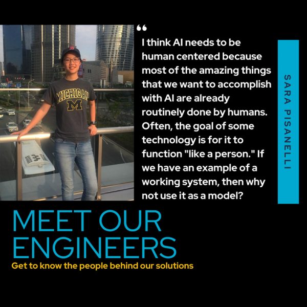 “I think AI needs to be human centered because most of the amazing things that we want to accomplish with AI are already routinely done by humans,” Sara continued. “Often, the goal of some technology is for it to function ‘like a person.’ If we have an example of a working system, then why not use it as a model?”